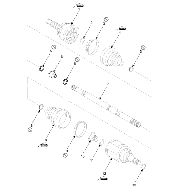 9. Pare-poussière TJ 10. Croisillon 11. Anneau de retenue 12. Pare-poussière du TJ |