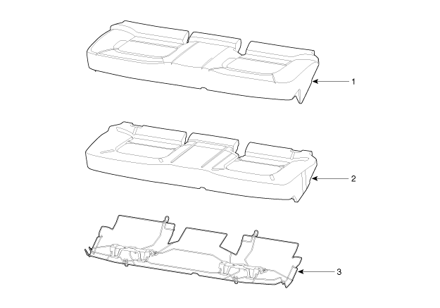 1. Revêtement d'assise de siège arrière [G] 2. Revêtement d'assise de siège arrière [D] 3. Patin de coussin de siège arrière [G] 4. Patin de coussin de siège arrière [D] |