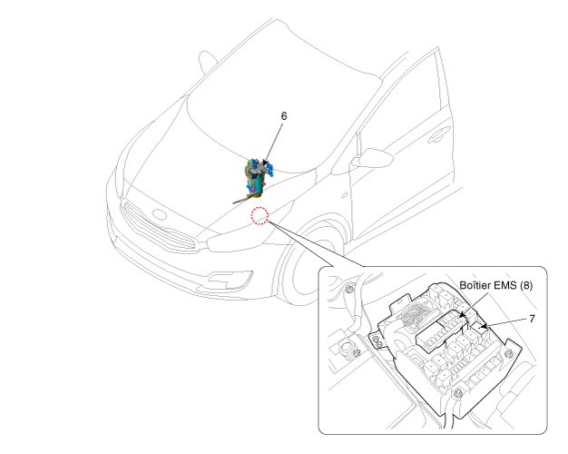haute pression) 6. Filtre à carburant 7. Relais du réchauffeur de carburant 8. Relais de la pompe à carburant (Boîtier EMS) |