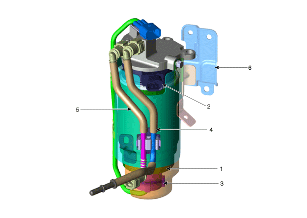 haute pression) 5. Connecteur rapide du flexible d'alimentation d'admission (↔ Réservoir de carburant) 6. Support de montage du filtre à carburant |