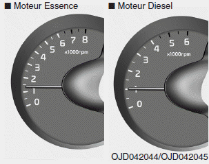 Le compte-tours indique la vitesse du moteur en tours par minute (tr/m).