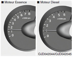 Le compte-tours indique la vitesse du moteur en tours par minute (tr/m).