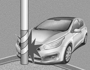 • Il est possible que les airbags ne se déploient pas si le véhicule percute des objets comme des poteaux ou des arbres ; en effet, le point d'impact se concentre sur une seule zone et la force globale de l'impact n'est pas transmise aux capteurs.