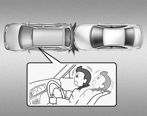 • Les airbags ne sont pas conçus pour se déclencher lors de chocs par l’arrière car les occupants sont projetés vers l’arrière par la force du choc. Dans ce cas, le déclenchement des airbags n’apporterait aucune protection supplémentaire.