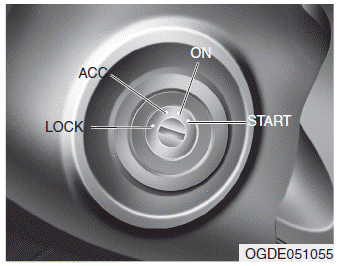 Chaque fois qu’une porte avant est ouverte, le contacteur d’allumage est éclairé pour votre commodité, à condition que le contacteur d’allumage ne soit pas sur ON. Le voyant s’éteint immédiatement dès que le contact est mis ou s’éteint au bout de 30 secondes environ lorsque la porte est fermée.