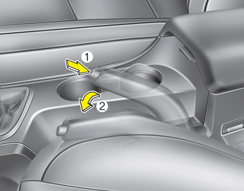 Pour défaire le frein à main, appuyez sur la pédale de frein puis tirez légèrement vers le haut le levier du frein à main. Appuyez sur le bouton du levier de frein à main (1), puis baissez le levier (2), tout en maintenant le bouton enfoncé.