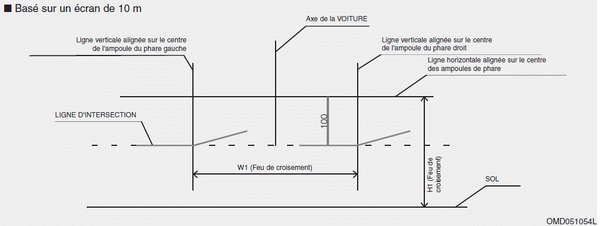 3. Lorsque vous orientez les feux de croisement, réglez l'orientation verticale après avoir réglé l'orientation horizontale.