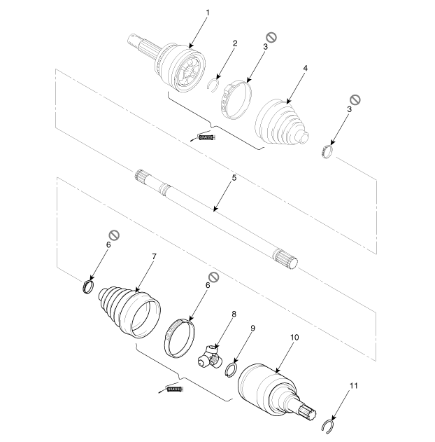 9. Anneau de retenue 10. Pare-poussière du TJ 11. Circlip du carter |