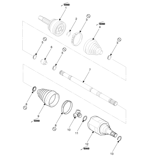 9. Pare-poussière TJ 10. Croisillon 11. Anneau de retenue 12. Pare-poussière du TJ |