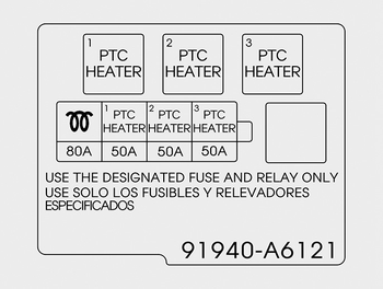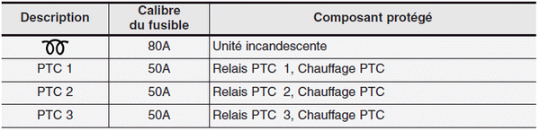 La véritable étiquette du panneau de fusibles/relais peut différer des éléments installés.