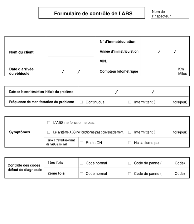 ▶ Contrôlez le circuit du capteur de vitesse de roue. |