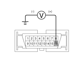 Mesurez la tension entre la borne 16 du connecteur de liaison de données