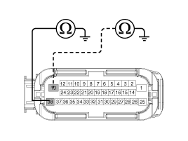 Vérifiez la continuité entre les bornes 13 et 38 du connecteur côté