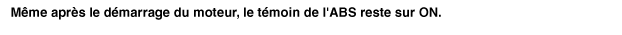 Même après le démarrage du moteur, l'ABS témoin d'avertissement de l'ABS reste sur ON |