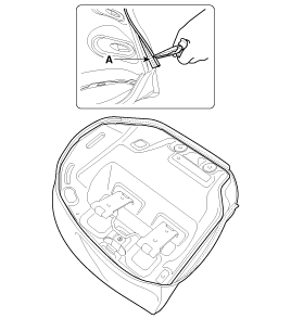 Débranchez le protecteur du couvercle de l'assise de siège arrière (A).
