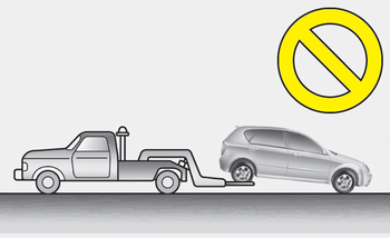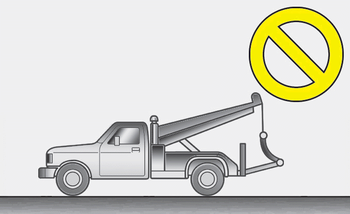 Lors du remorquage par une dépanneuse commerciale sans chariots porte-roues, c’est toujours l’avant du véhicule qui doit être levé, et non l’arrière.