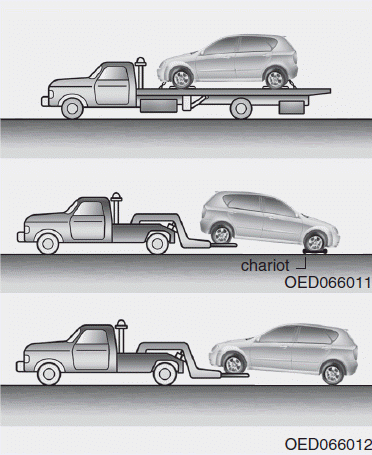 Lorsque vous remorquez en urgence votre véhicule sans chariots porte roues :