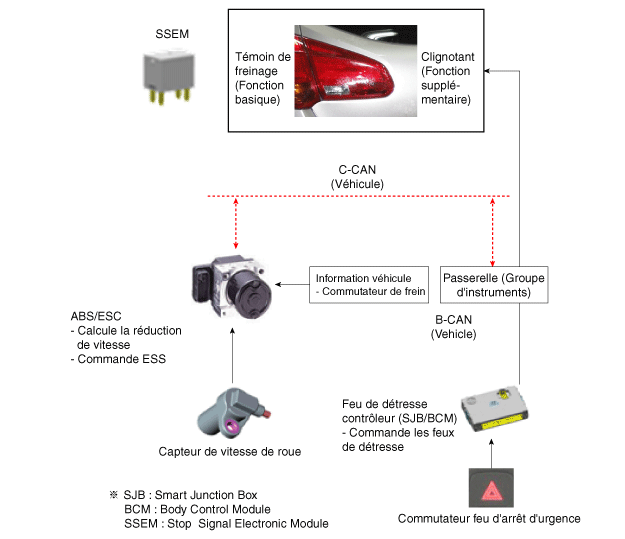 Fonction de base (Clignotement des feux de frein/feux d'arrêt d'urgence)