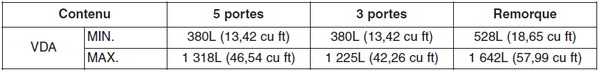 Min. : Derrière le siège arrière jusqu'à la partie supérieure du dossier du